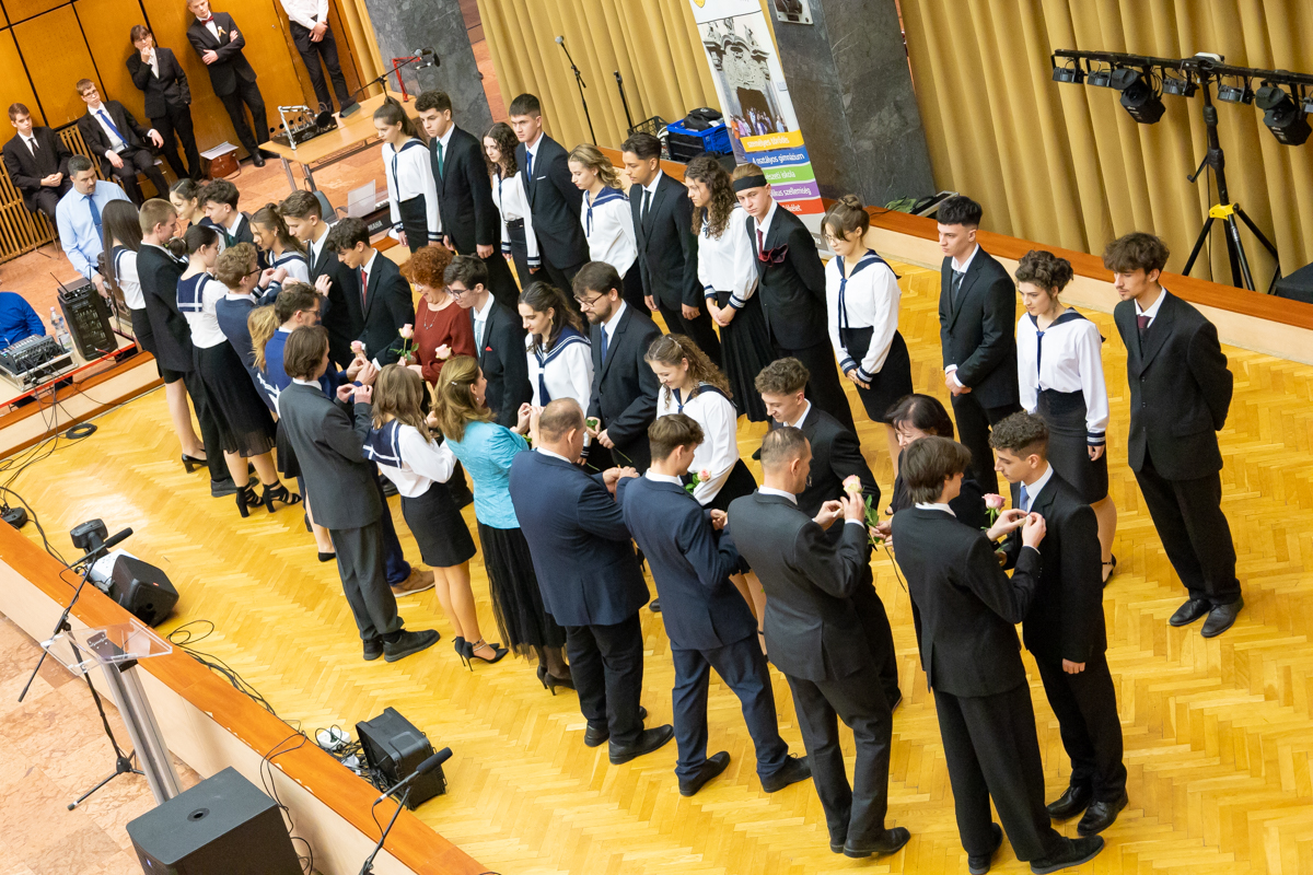 Iskolánk 2025.11.29-én (szombaton) tartotta meg szalagavató ünnepségét, melynek középpontjában a végzős gimnazista diákok hagyományos szalagtűzéssel történő felavatása állt. Az esemény színvonalát a Ritmusvarázs együttes egzotikus előadása és a 11. évfolyamosok humorban is bővelkedő műsora emelte. Az ünnepélyt továbbá a végzős osztályfőnökök (12.f – Ignácz Ágoston és 12.g – Tóth Viktor) osztályaikhoz szóló – egyaránt verses formában elhangzó – személyes, kedves beszéde, valamint a két osztály egy-egy képviselője által előadott diákbeszéd még inkább meghitté, bensőségessé tette.