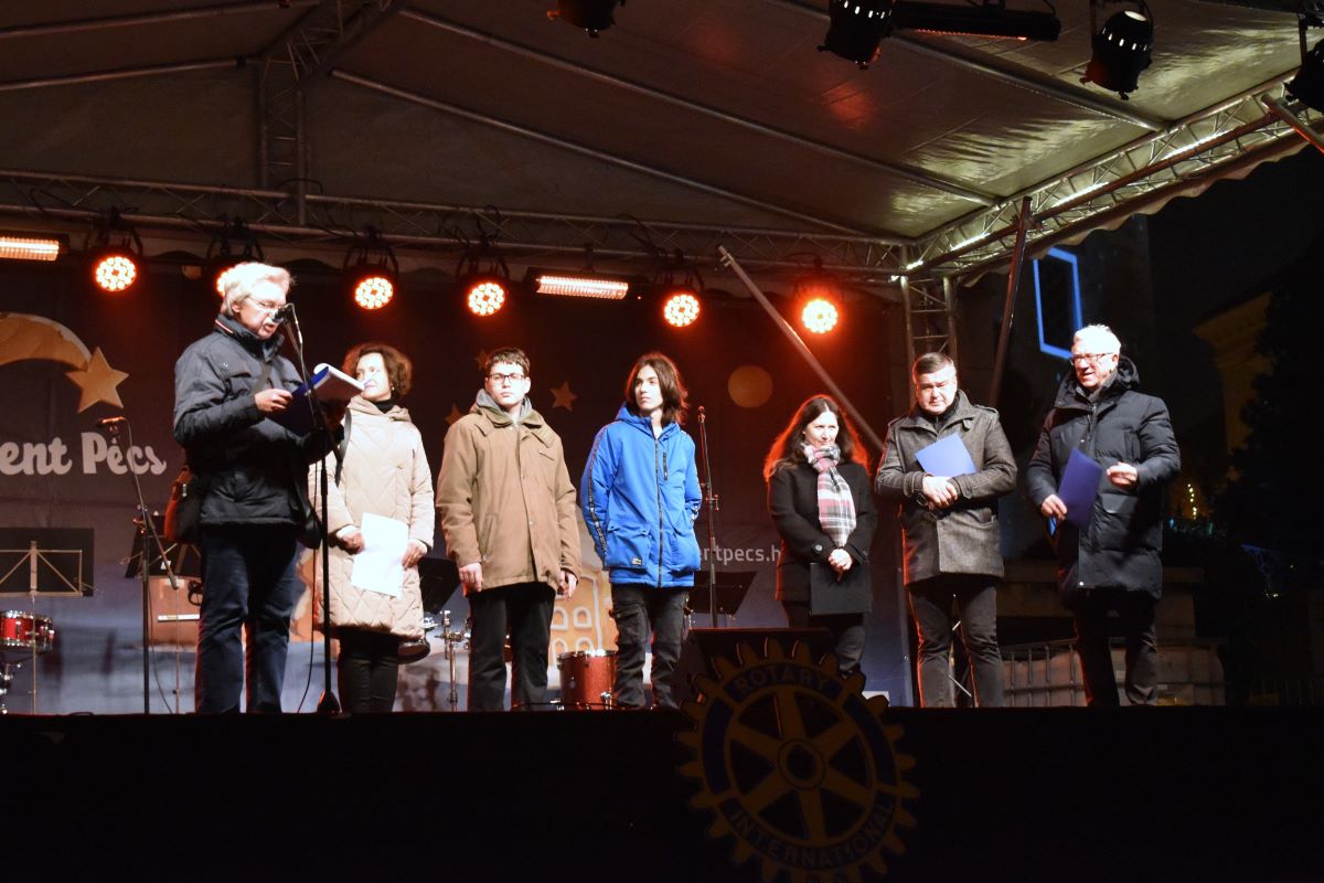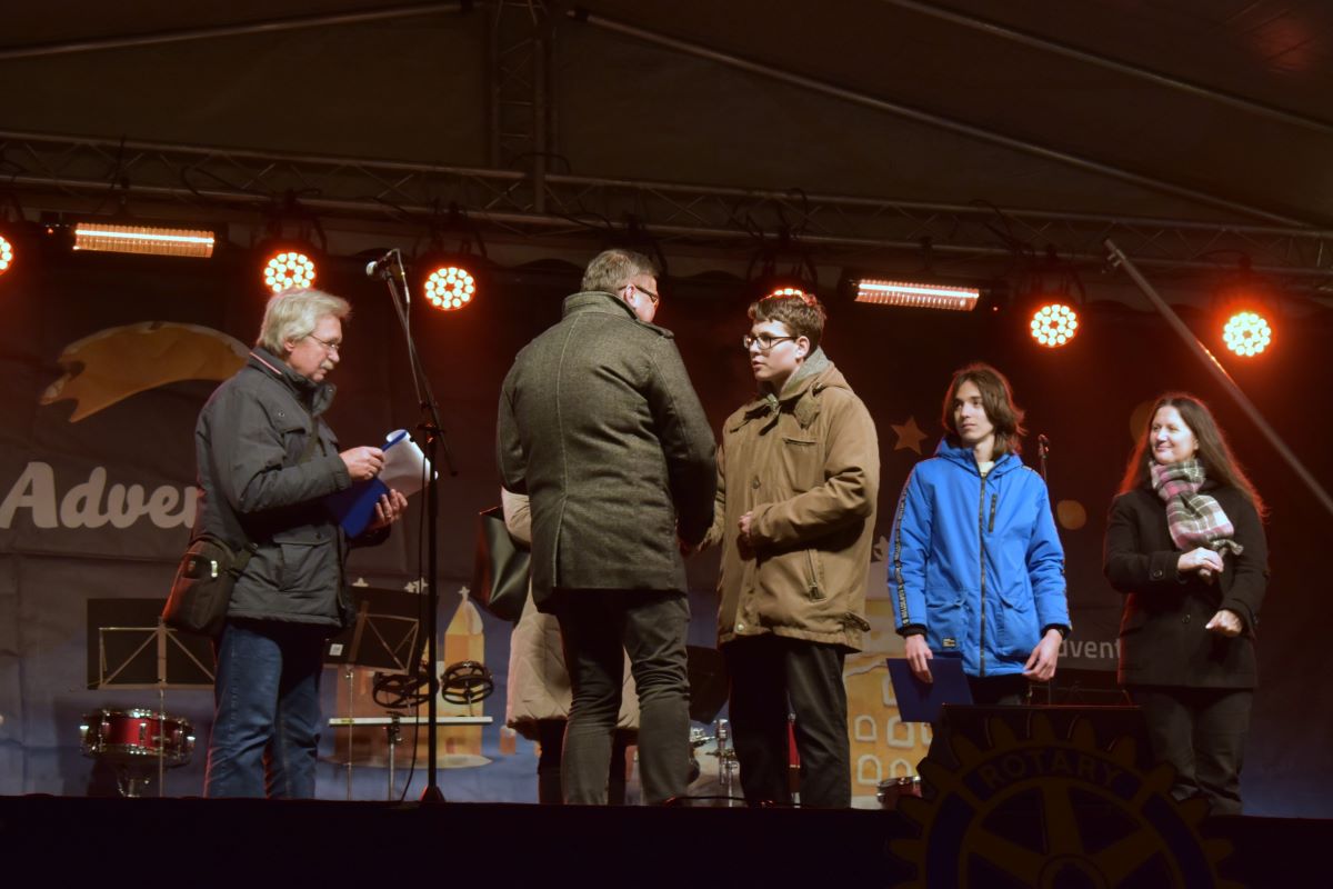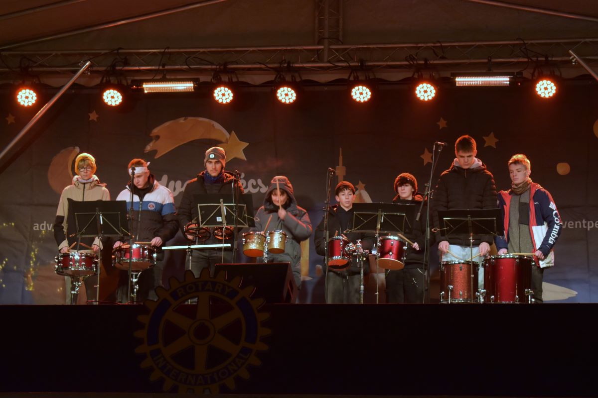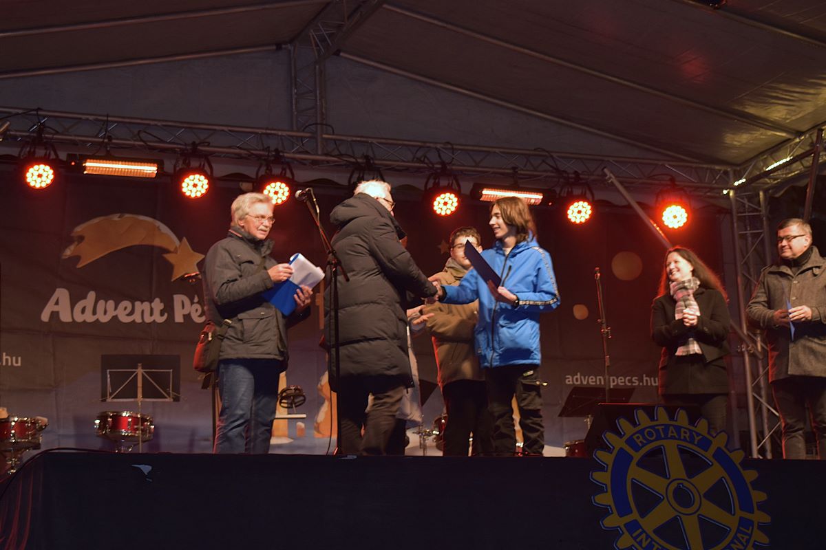 Városi hagyományainkhoz tartozik, hogy adventben a Rotary Klub minden nap a város valamelyik iskolájának arra érdemes tanulóját jutalomban részesíti. Az idén december 2-án két Szent Mór-os diákunkat is az a megtiszteltetés érte, hogy díjat vehetett át a nagyszínpadon. Tiszteletükre a Ritmusvarázs Ütőegyüttes és az iskola Vegyeskara ünnepi műsort adott.