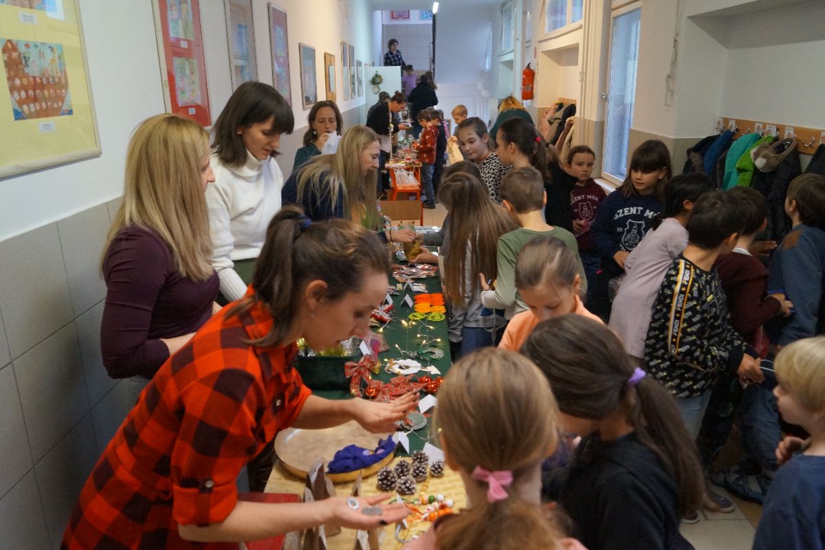 Több osztályban vidám közös barkácsolás zajlott, a délutáni foglalkozásokon pedig a gyerekek fantáziája szárnyalt: szebbnél szebb, szeretettel készült portékák születtek. A vásár napján csillogó szemek, mosolyok és kreatív kincsekkel roskadozó asztalok várták az érkező családokat.