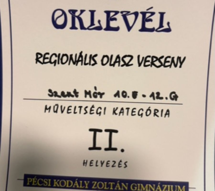 Iskolánk tanulói kiváló eredményekkel, magas színvonalon képviselték intézményünket a 2025. december 16-án megrendezett Regionális Olasz Fesztivál versenyein. Szereplésük nemcsak tudásukról, hanem kitartásukról, elkötelezettségükről és az olasz nyelv és kultúra iránti valódi érdeklődésükről is tanúskodott.