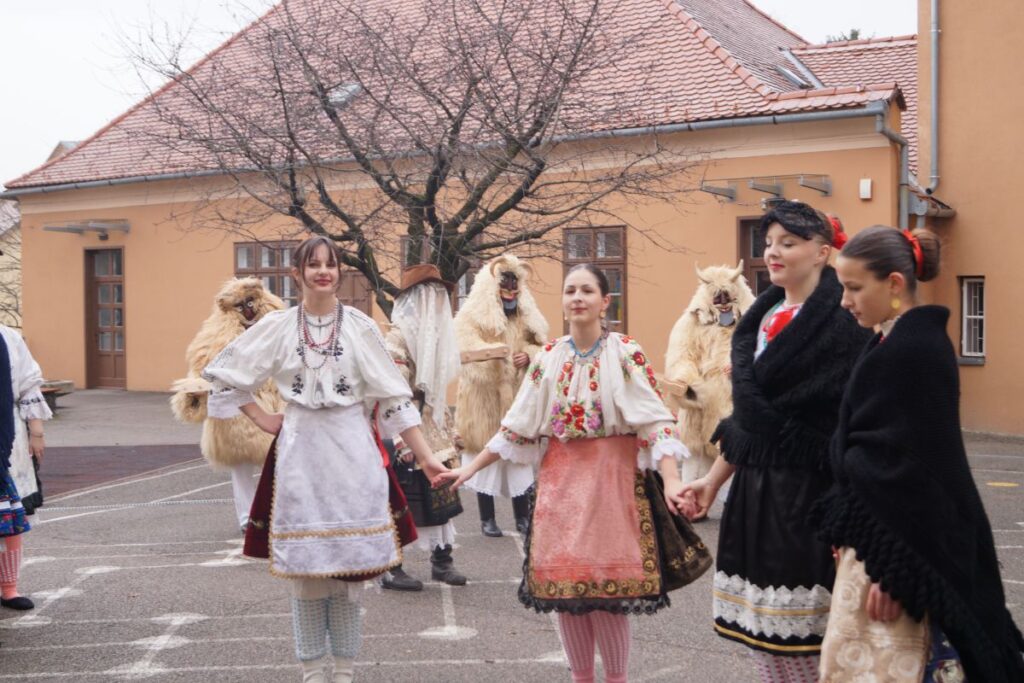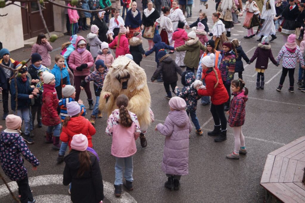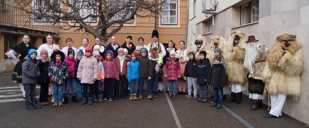 Marhakolompok és kereplők hangjától volt hangos az udvar, miközben a sokác népviseletbe öltözött táncosok körtáncra hívták a gyerekeket. Köszönjük vendégeinknek a felszabadult pillanatokat és a jókedvet!