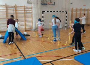 2026.02.23-án tartottuk iskolánkban a Magyar Parasport Napját. Ennek apropóján 6 helyszínből álló fesztivált rendeztünk. Minden órában a berendezett helyszínek várták az aktuálisan testnevelés órára érkező diákokat. Kipróbálhatták az ülőröplabdát, a bocciat, a félkarú floorballt, a kereskesszéket imitáló fittball labdáról kosárra dobást, a bekötött szemmel célbadobást és a társ általi vezetést akadálypályán szintén bekötött szemmel. Az óra elején megbeszéltük, miért van nagy jelentősége a parasportnak, s megemlítettük a pécsi paralimpikonjainkat is.